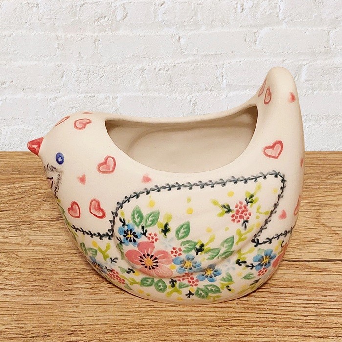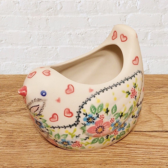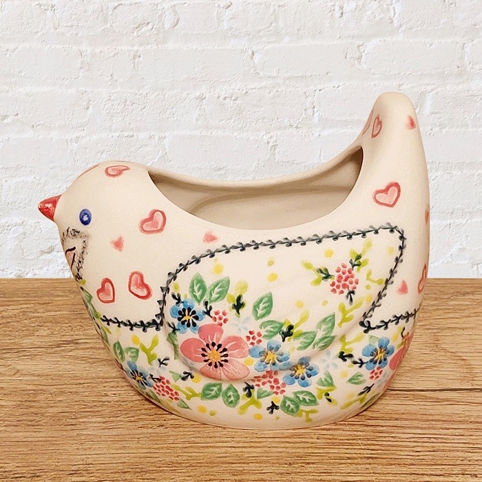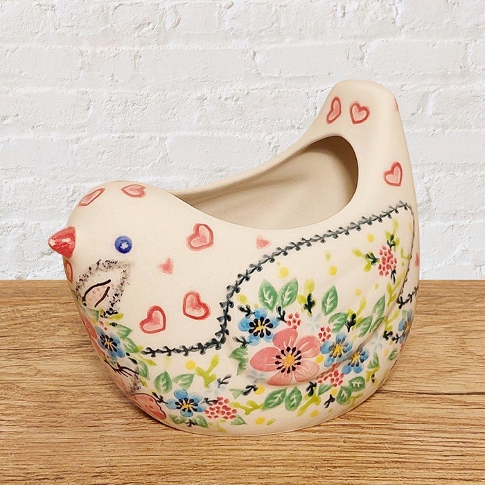 による、鳥の形をしたユニークな陶器のポットです。