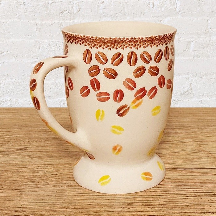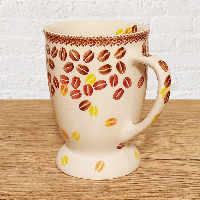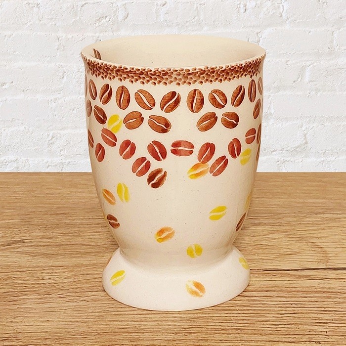 口元がわずかに広がったクラシックなシルエットで、安定感のある台座と持ちやすいハンドルが特徴です。