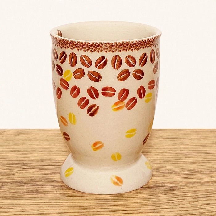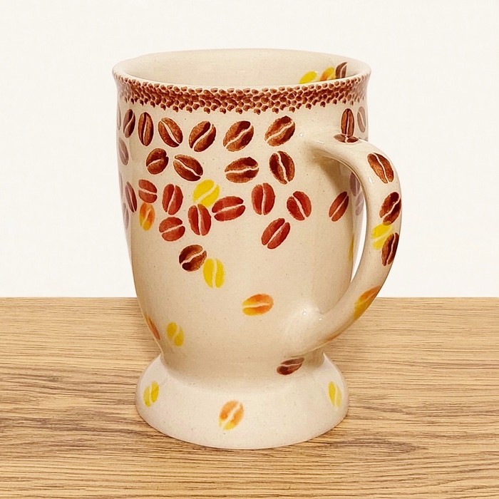 口元がわずかに広がったクラシックなシルエットで、安定感のある台座と持ちやすいハンドルが特徴です。